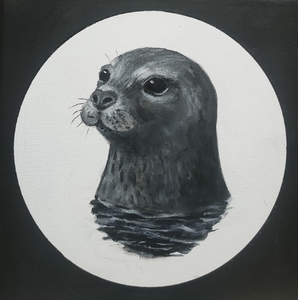2025Zeehond op zee. Eenvoudig klein portretje.
